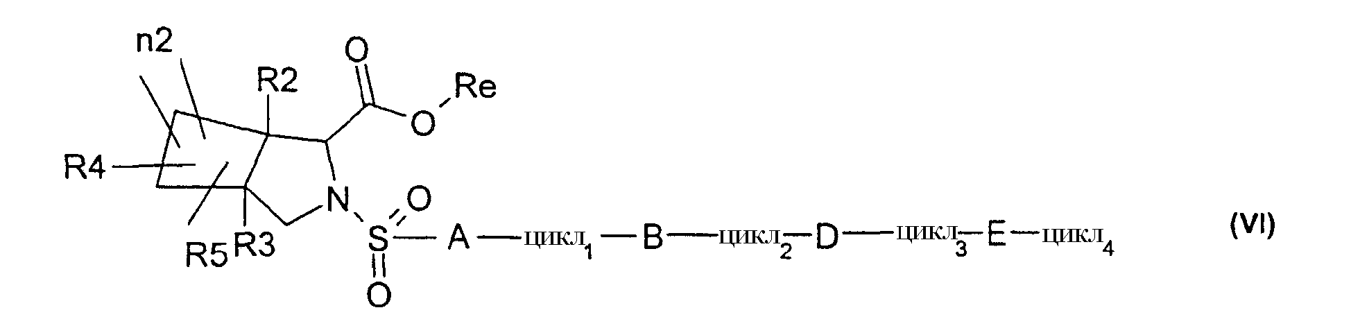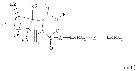 b) если Re – сложный эфир, полученное по п. а), соединение формулы (VI) вводят во взаимодействие со щелочью, как NaOH или LiOH, и осуществляют последующую обработку кислотой с получением карбоновой кислоты формулы (I), где Х – ОН (соответствует формуле (VII)), причем, в случае необходимости, предварительно осуществляют модификации в одной из боковых цепей циклов цикл 1 – цикл 2; или указанный сложный эфир путем обработки неорганической кислотой, как соляная кислота, превращают в свободную карбоновую кислоту формулы (VII)