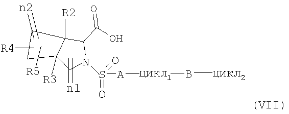 где А, В, R2, R3, R4, R5, n1, n2 и цикл 1, цикл 2 имеют вышеуказанное значение;