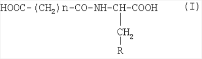 Настоящее изобретение также относится к способу получения N-ацильных производных аминокислот общей формулы I и их солей, включающему прибавление ангидрида глутаровой или янтарной кислоты в виде твердого вещества к водному раствору аминокислоты общей формулы: