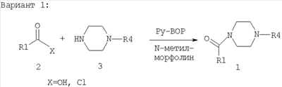 10. Способ получения арил- или гетероарилкарбонилпиперазиновых соединений по любому из пп.1-9, отличающийся тем, что проводят реакцию карбоновой кислоты общей формулы 2