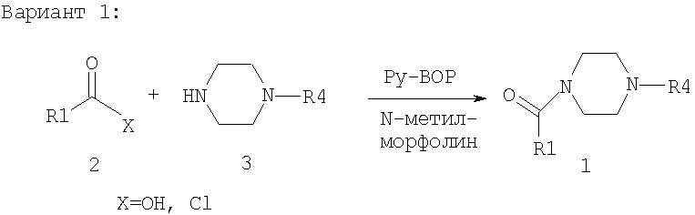 Соединения, описываемые формулой 1, могут быть получены, например, по нижеприведенной схеме.