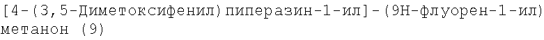 Раствор 1 г (4,12 ммоль) 9-флуорен-4-карбонилхлорида в 30 мл диметилформамида был последовательно обработан 0,67 г (6,59 ммоль) N-метилморфолина, 0,92 г (4,12 ммоль) 1-(3,5-диметоксифенил)пиперазина и 2,36 г (4,53 ммоль) Ру-ВОР (1-бензотриазолилтрипирролидинофосфониум гексафторфосфат). Смесь перемешивалась в течение 12 часов при комнатной температуре, выстаивалась ночь при комнатной температуре, затем диметилформамид отгонялся под вакуумом и остаток очищался пропусканием через колонку с силикагелем (силикагель 60, от Merck AG, Дармштадт) с использованием в качестве элюэнта смеси дихлорметан/метанол (95:5, об.).