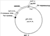 После амплификации гена NMB0928 при помощи ПЦР (Randall K, et al. 1988. Science 42394:487-491) с применением праймеров 7740 и 7741 продукт ПЦР расщепляли рестриктазами BglI и EcoRI и клонировали в предварительно расщепленный клонирующий вектор рМ-100. Конечная конструкция показана на фигуре 2, и белок NMB0928 экспрессируется в виде белка, слитого с Nt-сегментом белка Р64 кДа. Секвенирование клонированного гена NMB0928 проводили с применением автоматического секвенатора ALFexpress (Termo SequenaseТМCyТМ(5 Terminator Kit, Amersham Biosciences) и олигонуклеотидов 1573 (SEQ ID NO:8) и 6795 (SEQ ID NO:9), которые связывают последовательность стабилизатора Р64 и терминатор транскрипции Т4 соответственно. Генерируемая здесь плазмида была названа рМ-242 для ее последующего применения.