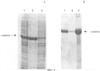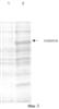 Фигура 3. Анализ электрофореза в ДСН-ПААГ фракций, полученных из разрушения клеток; Дорожка 1, супернатант; Дорожка 2, осадок клеток.