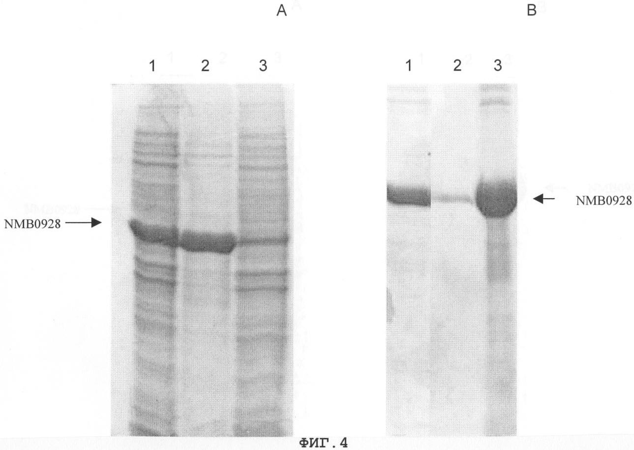 1. Белок N.meningitidis, названный NMB0928, отличающийся тем, что является антигеном, способным вызывать в организме реципиента защитную реакцию против инфекций, вызванных бактериями из рода Neisseria, и имеет аминокислотную последовательность, идентифицируемую в списке последовательностей как SEQ ID NO:4.