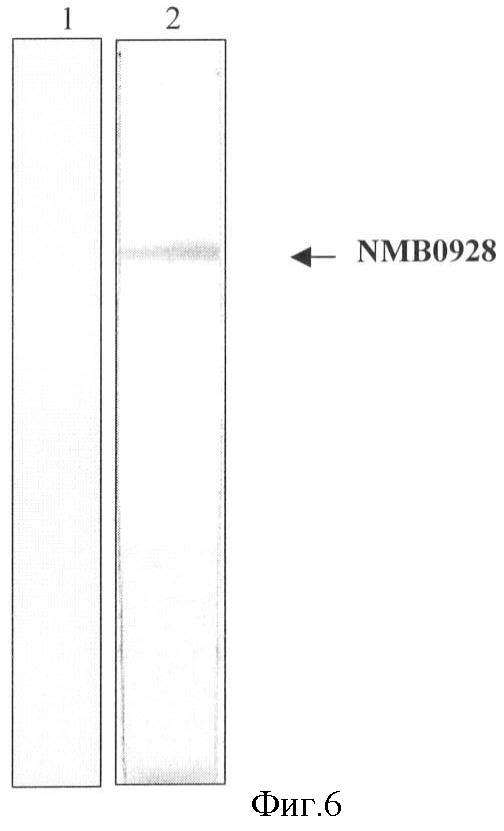 Для генерирования моноклональных антител (mAb), специфических против белка NMB0928, и изучения функциональной способности опосредования бактерицидной активности против гомологичного и гетерологичного штамма N. meningitidis проводили схему иммунизации препаратом белка NMB0928 с чистотой, более высокой чем 70% (пример 3). Иммунизацию выполняли в Balb/c (Н-2d, самках, 5-6-недельных) и 4 дозы вводили следующим образом: в дни 0, 15 и 30 обычной иммунизации, 10 мкг антигена NMB0928 на мышь (общий объем 100 мкл) вводили подкожным путем, в виде эмульсии адъювантом Фрейнда; в день 50 10 мкг антигена на мышь в забуференном фосфатом солевом растворе (140 мМ NaCl, 270 мМ KCl, 1,5 мМ КН2РО4, 6,5 мМ Na2НРО4 x2Н2О, рН 7,2) вводили внутрибрюшинным путем. Извлечения крови выполняли в дни 0 и 45.