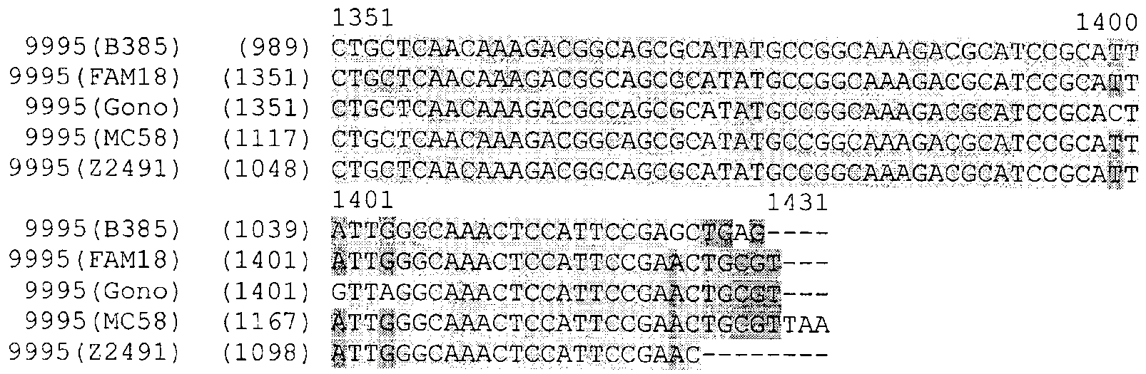 Результаты, полученные в исследованиях, проведенных методом WCE, дают возможность сделать заключение, что антиген NMB0928 является консервативным во всех исследованных штаммах Neisseria, которые относятся к роду Neisseria meningitidis и Neisseria lactamica. Более того, антитела против антигена, присутствующего у одного вида, способны перекрестно реагировать с антигеном, присутствующим не только у различных изолятов, но даже и у различных видов-представителей Neisseria.