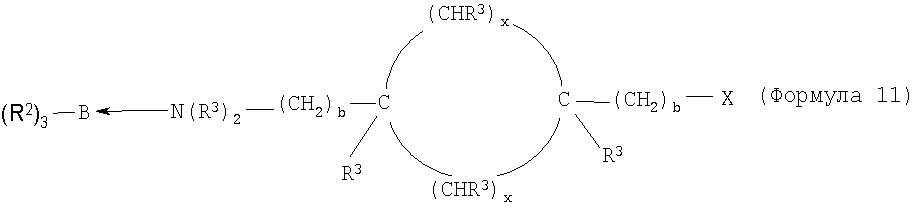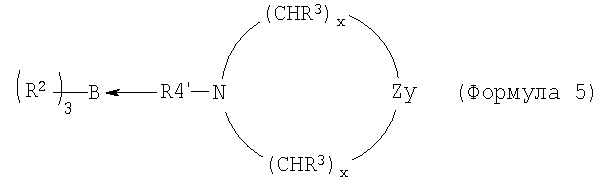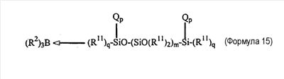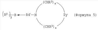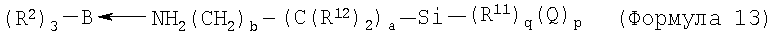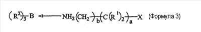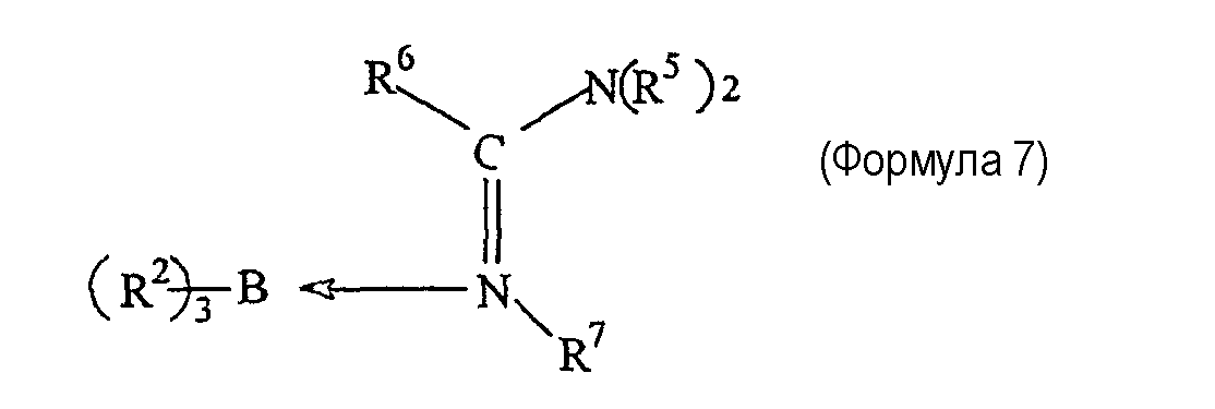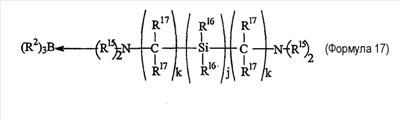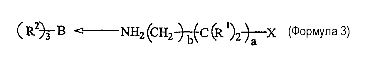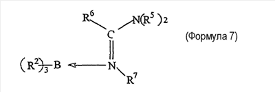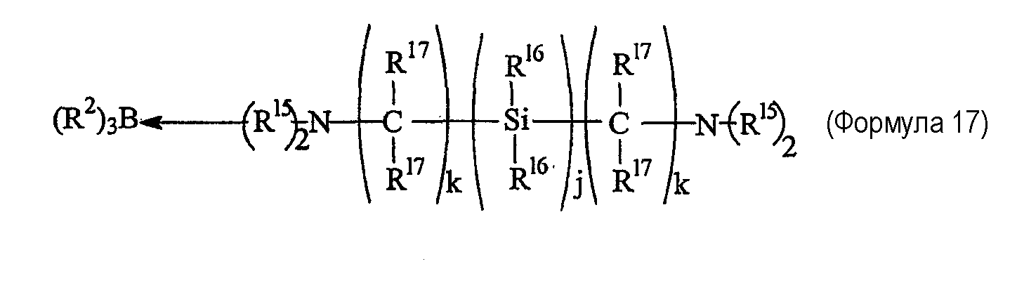 Примеры 7-16 Примеры 7-16 показывают, что клеи настоящего изобретения, рецептура которых содержит катализаторы настоящего изобретения, могут обеспечить превосходную адгезию к подложкам с низкой поверхностной энергией. Во всех случаях подложкой является ПЭТФ, и рецептура клея содержит 50% PDMS-OH c молекулярной массой (ММ) 44000, 5% (метакрилоксипропил)триметоксисилоксана, 1% DBTDA, 3% Cabosil 610, остальное до 100% – метилметакрилатный мономер. Катализатором является трибутилборан (ТВВ), образующий комплекс 1,1 или 1,5 моль указанного амина на моль ТВВ. Клей содержит 4% комплекса катализатора. Результаты обобщены в таблице 2. Испытание на сдвиг клеевого соединения внахлест проводят при комнатной температуре (RT) 25°С. Во всех случаях разрушение является когезионным разрушением клея, что означает, что обе поверхности подложек имеют покрытие клея после разрушения.