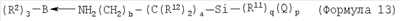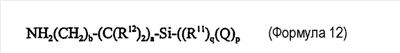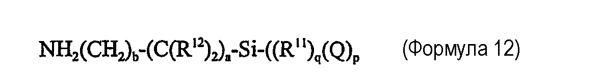 Примеры 57-75 В примерах 57-75 показана способность клеев настоящего изобретения к получению превосходной адгезии к подложкам с низкой поверхностной энергией с использованием механизма винильной полимеризации (присоединения). Клей состоит из поли(диметилсилоксанметилгидросилоксанового) сополимера с Mn2600, гидридное окончание которого составляет 26% мас. метилгидросилоксана, и полидиметилсилоксана с дивинильным окончанием с вязкостью 1000 сП (сантипуаз) (1 Па.с). Силоксановую полимеризацию катализируют с использованием 0,1 моль Pt(0), образующей комплекс с 1,3-дивинил-1,1,3,3-тетраметилсилоксаном. Свободнорадикальную полимеризацию проводят с использованием комплекса трибутилборана с изофорондиамином в эквивалентном соотношении 1:1,1 (Н-28), которая инициируется взаимодействием боран-аминного катализатора с изофорондиизоцианатом. Во многих случаях в рецептуру вводят дополнительное количество амина и изоцианата для улучшения физических свойств клея. В качестве наполнителей в рецептуры водят стеклянные шарики VS5500 и коллоидальный диоксид кремния Cabosil 530. В каждом случае метилметакрилат используют в качестве мономера для свободнорадикальной полимеризации. Все массы даются в граммах. Компонент 1 содержит стеклянные шарики VS5500; 8 частей Н-28, за исключением примера 70, в котором присутствует 6 частей; PdV; IPDA и PDMSH. В примере 75 также используют 2 части коллоидального диоксида кремния Cabosil 530. Компонент 2 клеевых композиций содержит 11 частей коллоидального диоксида кремния Cabosil 530, за исключением примера 73, в котором содержится 10 частей; IPDI; Pt(0)-комплекс; метилметакрилат. Рецептуры предназначаются для обеспечения приблизительно волюметрического соотношения 1:1. Испытания на сдвиг клеевого соединения внахлест проводят при комнатной температуре на iPP и ПЭТФ подложках. В таблице 11 показаны количества компонентов, которые варьируются в примерах, и результаты.