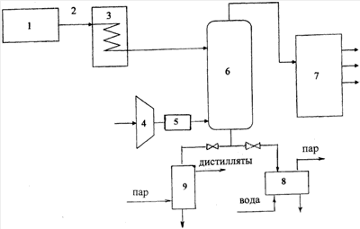 Образовавшиеся светлые нефтепродукты из верхней части реактора термического крекинга поступают в блок разделения, где из общей смеси выделяют газовую, бензиновую и дизельную фракции.