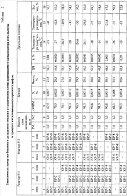 Таблица №1 Влияние условий жидкофазного каталитического окисления нефти на качество и выход продуктов |