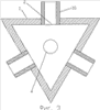 На фиг.3, 4 представлены варианты изобретения при различных (некруглых) поперечных сечениях тигля 1 – треугольного (фиг.3) и шестигранника (фиг.4). В каждой грани тигля 1 выполнены отверстия 2, с которыми состыкованы механические средства подачи шихты 10. Отверстие 4 для выпуска металла размещено в днище тигля.