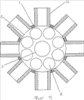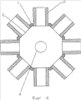 На фиг.3-4 даны варианты тиглей в поперечном сечении с несколькими радиальными вводами шихты в расплав.