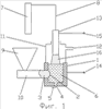 Работа устройства при аксиальном вводе шихты в расплав (фиг.2) происходит аналогичным образом. Выпуск металла производят через отверстие 4 в боковой стенке тигля 1.