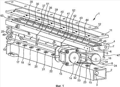 Такое же число сквозных отверстий с 34 по 46 находится над продольным отверстием 6, высверленным в плите клапана 4. Соответствующее число отверстий имеется под продольным отверстием 6. Однако на Фиг.1 эти отверстия не видны.