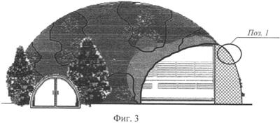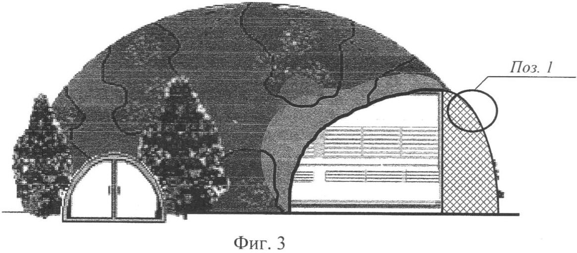 фиг.3 – защитная оболочка, возведенная над зданием;