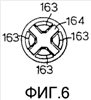 На нижнем конце внутреннего поршня 156 предусмотрено приводное средство 33, выполненное в виде плунжера 164. Плунжер 164 имеет крестообразное поперечное сечение на своем самом нижнем конце, как лучше всего видно на фиг.6, и служит для обеспечения смещения внутренней гильзы 125 в продольном направлении относительно наружной гильзы 123 фиксирующей секции. С этой целью внутренний поршень 156 выполнен с возможностью перемещения в продольном направлении относительно наружного элемента 155. Плунжер 164 показан в первом, отведенном положении, в котором он обозначен 166. В то же время данное положение характеризует положение первого, наружного элемента 156 и внутреннего поршня (второго элемента) 156 относительно друг друга. Это также видно на изображении верхней части вспомогательного инструмента 30 на фиг.4, где стержень 167, который соединен с верхней частью внутреннего поршня 156, полностью отведен от верхней части наружного элемента 155. Стержень 167 имеет буртик 168 и соединен через посредство вертлюга 169 с другим оборудованием (непоказанным), образующим часть вспомогательного инструмента 30 или присоединенным к верхнему концу вспомогательного инструмента 30. Вертлюг создает возможность свободного вращения подобного другого оборудования.
