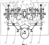 На первой фазе движения (фиг.2) зубчатое колесо 10 остановлено тормозом14, а колесо 10′ остановлено тормозом 14′. При этом скорость колеса 9 изменяется от 0 до + , а скорость колеса 9′ от + до 0. Скорости колес 9 и 10 складываются на выходном звене 12 суммирующего механизма, а скорости колес 9′ и 10′ складываются на выходном звене 12′ суммирующего механизма. В свою очередь скорости звеньев 12 и 12′ складываются симметричным суммирующим механизмом и его водило движется с постоянной скоростью + .