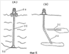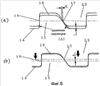 На фиг.5(а) и 5(b) схематически показаны эти состояния. Как показано на фиг.5(а), нефтяная скважина 33 на дне моря соединена с платформой 34, находящейся на поверхности, проходящими вертикально трубами 35 водоотталкивающей колонны так, что на эти трубы действует большая сжимающая сила. Кроме того, в последнее время, как показано на фиг.5(b), возникают ситуации, когда бурильные трубы 31 проходят в горизонтальном направлении или в которых бурильные трубы 32 изогнуты. При установке бурильных труб под землей в горизонтальной или подобной скважине для прохождения прямой бурильной трубы через искривленный участок в породе бурильную трубу спускают, вращая ее, и в это время на участки резьбового соединения воздействует большая сжимающая сила.