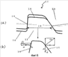 На фиг.1(а) и 1(b) представлены схематическое поперечное сечение одного примера соединения повышенной прочности и увеличенный вид его части. Обычно соединение повышенной прочности имеет коническую резьбу 12 и 22, металлический уплотняющий участок 4 и упорный заплечик 5 для передачи крутящего момента. Сторона, на которой выполняется наружная резьба 12, называется “конус” 11, а сторона, на которой выполняется внутренняя резьба 22, называется “раструб” 21.