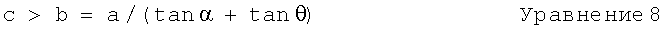 В упорной резьбе сопрягающая сила воспринимается нагружаемыми рабочими поверхностями и впадиной профиля резьбы, поэтому, как показано на фиг.4(а) и 4(b), возникает баланс сил между силой С1 контакта на впадине профиля резьбы, силой С2 контакта на нагружаемой рабочей поверхности профиля резьбы и сопрягающей силой. На основе угла нагружаемых рабочих поверхностей профиля резьбы относительно радиального направления и угла впадины профиля резьбы относительно осевого направления соединения (или, другими словами, угла конусности резьбы) можно вывести следующие четыре равенства:
