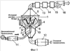 В качестве форсунки 5 используется акустическая форсунка (фиг.2), содержащая полый корпус 17 со стенками, образованными конической и торцевыми поверхностями с размещенными в нем резонатором 25 и полостью 21 для распыливающего агента, поступающего через штуцер 19 в коллектор 18, связанный через отверстия 20 с полостью 21, которая выполнена в виде усеченного конуса с большим и меньшим основанием.