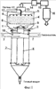 Упаренный подогретый исходный материал скапливается на перегородке 3. С помощью сжатого воздуха форсунок 10 упаренный подогретый исходный материал распыливают в сушильную камеру 2.