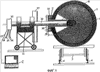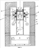 Обе стойки 21 и 22 опорного кронштейна 21, 22, 24, а также поворотный диск 45 окружены схематически изображенным жидкостным охладителем 48 и/или изолирующим слоем 49, которые заключены в оболочке 50 из стального листа. В качестве охлаждающей среды может применяться вода или масло. При экстремальной тепловой нагрузке измерительная головка 8 может быть снабжена системой газового охлаждения или системой охлаждения сжатого газа (например, испаряемого газа, такого как фреон), однако при небольшой тепловой нагрузке может применяться что-либо одно. С этой целью в случае данного варианта осуществления в стойке 22 опорного кронштейна 21, 22, 24 проложены трубопроводы для сжатого воздуха, которые здесь не показаны и которые здесь не показанным способом присоединяются к концу 33 полого вала. Сжатый воздух (или другой газ) проходит с относительно высокой скоростью измерительную головку 8, выходит через конец полого вала 34 и далее отводится через стойку 21 опорного кронштейна 21, 22. Для того чтобы добиться оптимального эффекта охлаждения с помощью сжатого воздуха или газа, во внутренней части измерительной головки могут быть расположены направляющие щитки.