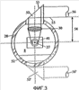 На фиг.2 показана конструкция измерительного устройства в разрезе по оси. Измерительная головка 8 имеет относительно оси 27 цилиндрический корпус 28. В цилиндрической оболочке расположено в основном прямоугольное окно 29 для передачи и приема измерительного луча. В корпусе 28 позади окна 29 находятся две линзы 30, 31 измерительных лучей (коллимирующая линза для переданного луча и фокусирующая линза для отраженного эхосигнала). Вес этих стеклянных элементов 29-31 компенсируется за счет расположенного в корпусе 28 противовеса 31. Корпус 28 может поворачиваться вокруг оси 27. Измерительная головка 8 установлена на концевых участках 33, 34 полого вала. Оба концевых участка вала 33, 34 установлены в схематически изображенных подшипниках 35, 36. Измерительная головка 8 приводится в движение двигателем М, малое зубчатое колесо 37 которого взаимодействует с шестерней 38 внутреннего зацепления, которая закреплена на стенке корпуса 28 соосно с полым валом. В качестве альтернативы, возможно, что перемещение измерительной головки осуществляется двигателем снаружи и при необходимости также и вручную.