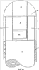 При проведении измерений измерительная головка 8 вращается между обеими стойками 21 и 22 опорного кронштейна в направлении стрелки 23. На фиг.1 видно, что происходит затенение конической области 25 вокруг трубы 9, так как измерительный луч наталкивается на основание 24 (фиг.2) измерительного устройства (на котором также расположены стойки 21 и 22; см. фиг.2, 4а) и соответственно не может попасть на футеровку вокруг загрузочного патрубка 2. Благодаря вращению измерительной головки 8 в направлении стрелки 26, кроме области 25, получается полная съемка внутреннего пространства торпедного ковша 1. Для каждой отдельной области в зависимости от расстояния и одновременно по зарегистрированным угловым величинам отклонения луча сканирующим устройством получаются пространственные координаты. По совокупности всех элементов данных может быть построена трехмерная модель внутреннего пространства ковша 1. При наличии старой съемки этого торпедного ковша 1 с помощью картины разности между съемками могут быть определены изменения в поверхности футеровки. Эта старая съемка может сохраняться в памяти, например, компьютера С и может сравниваться или с непосредственными данными, получаемыми от измерительной головки 8, или после промежуточного хранения в памяти компьютера С.