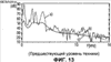 Фиг.13 – схема, в которой в качестве примера представлен спектр аудиосигнала, его пороговое значение слышимости и функция передачи последующего фильтра в декодере.