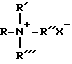 Катионогенные ПАВПАВ классифицируют как катионогенные, если заряд гидротропной части молекулы положителен. ПАВ, в которых гидротроп не несет заряда до тех пор, пока pH не понижают до нейтрального или ниже, также включены в эту группу (например, алкиламины). Теоретически катионогенные ПАВ могут быть синтезированы из любого сочетания элементов, содержащих “ониевую” структуру RnX+Y–, и могут включать помимо азотистых (аммоний) и такие соединения, как соединения фосфора (фосфоний) и серы (сульфоний). На практике среди катионогенных ПАВ преобладают азотсодержащие соединения, возможно, потому, что последовательность операций синтеза азотистых катионогенов проста и прямолинейна и дает высокий выход продукта, то есть они дешевле. К катионогенным ПАВ относятся соединения, содержащие по меньшей мере одну длинную углеродную цепную гидрофобную группу и по меньшей мере один положительно заряженный азот. Длинноцепная углеродная группа может быть присоединена непосредственно к атому азота простым замещением или, что предпочтительнее, косвенно, посредством мостиковой функциональной группы или групп в так называемых разорванных алкиламинах и амидоаминах, что повышает гидрофильность молекулы и, следовательно, ее диспергируемость в воде, и облегчает растворение в воде с помощью сопутствующих смесей ПАВ. Водорастворимость можно повысить, вводя дополнительные первичные, вторичные или третичные аминогруппы или кватернизируя аминный азот низкомолекулярными алкильными группами. Далее, азот может быть членом разветвленной или прямой цепной группировки с разными степенями ненасыщенности, либо насыщенного или ненасыщенного гетероциклического кольца. В дополнение к этому, катионогенные ПАВ могут иметь комплексные связи, содержащие более, чем один катионогенный атом азота. Поверхностно-активные соединения, относящиеся к классам аминоксидов, амфотерных и цвиттерионных, сами по себе являются катионогенными в растворах с pH от почти нейтрального до кислого и перекрывают классификацию ПАВ. Полиоксиэтилированные катионогенные ПАВ ведут себя подобно неионогенным ПАВ в щелочных растворах и как катионогенные ПАВ в кислых растворах. Простейшие катионогенные амины, соли аминов и четвертичные соединения аммония могут быть схематически представлены следующим образом ![]() ![]() ![]() где R представляет длинную алкильную цепь, R’, R” и R”’ могут быть либо длинными алкильными цепями, либо меньшими алкильными или арильными группами или водородом, а X – анион. В изобретении практически применимы только соли аминов и четвертичные аммониевые соединения, ибо они водорастворимы. 11. Большинство крупнотоннажных коммерчески доступных катионогенных ПАВ можно разделить на четыре главных класса и дополнительные подгруппы (согласно “Surfactant Encyclopedia”, Cosmetics & Toiletries, Vol. 104 (2), 86 – 96 (1989), включено посредством ссылки): А. Алкиламины (и соли) Б. Алкилимидазолины В. Этоксилированные амины Г. Четвертичные соли 1. Соли алкилбензилдиметиламмония 2. Соли алкилбензола 3. Соли гетероциклического аммония 4. Соли тетраалкиламмония Согласно изобретению катионогены представляют специализированные ПАВ, предназначенные выполнять конкретное, например моющее, действие в композициях, используемых при pH ниже нейтрального, антимикробное, загущающее и желирующее действие в сочета
