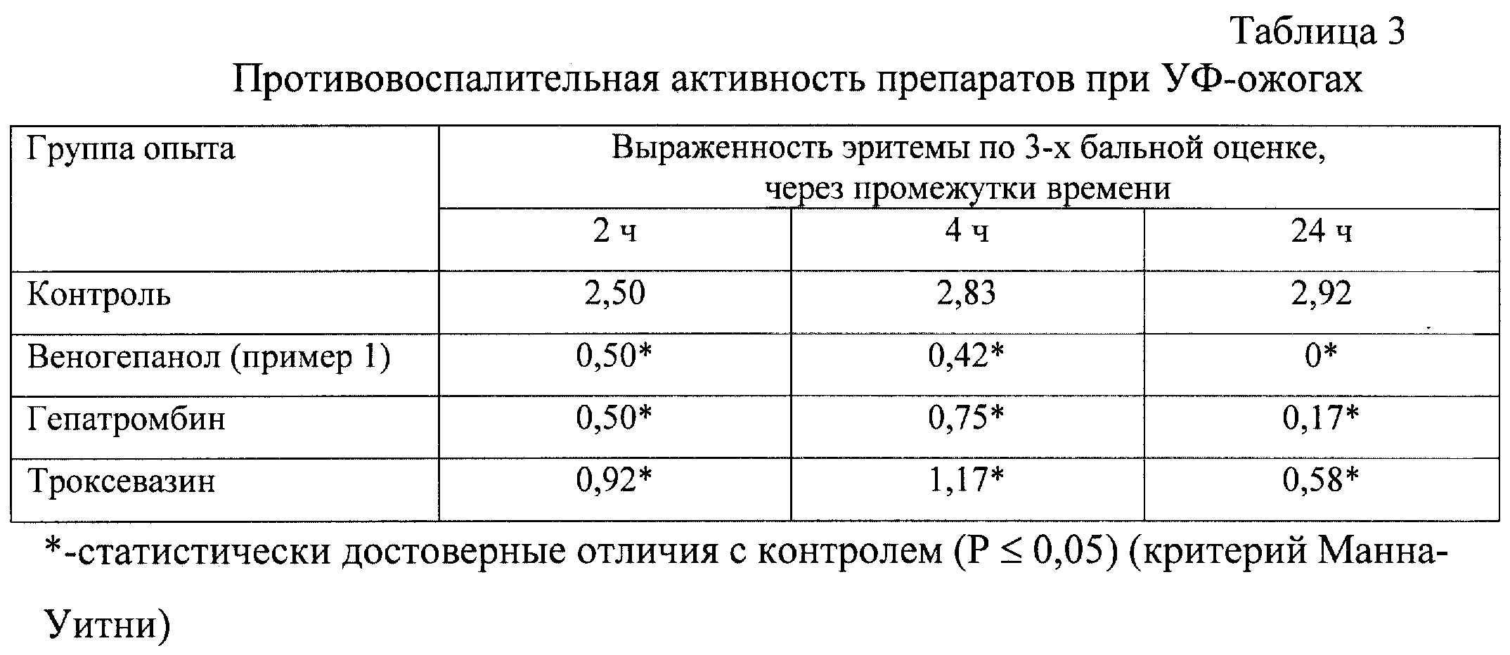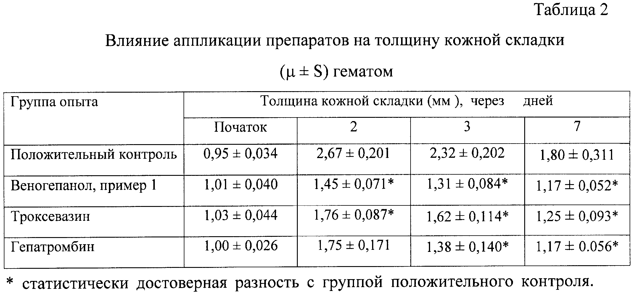 Изобретение относится к фармацевтике и касается препарата для лечения и профилактики патологических поражений сосудов и тканей. Изобретение заключается в том, что препарат содержит активные компоненты гепарин, декспантенол и венорутинол, неводный гидрофильный растворитель и воду, при определенном соотношении компонентов, при этом использован гелеобразователь на основе редкосшитой полиакриловой кислоты – карбопол 980, гидрофильный растворитель – пропиленгликоль, щелочная основа – натрий едкий, комплексообразователь трилон Б, вода очищенная. Изобретение обеспечивает улучшение кровообращения и микроциркуляции в сосудах и тканях и расширение ассортимента препаратов для лечения и профилактики хронической венозной недостаточности тромбофлебитов, гематом и трофических язв сосудов и кожи, которые сопровождаются закупорками, воспалениями и отеками. 1 з.п. ф-лы, 5 табл. Изобретение относится к медицине и фармакологии, в частности к созданию гелей для лечения и профилактики патологических поражений сосудов и тканей. Препарат может быть использован при лечении болезней, связанных с венозной недостаточностью, варикозным расширением вен, тромбофлебитами, геморроем, посттравматическими отеками и гематомами, дерматитами и трофическими язвами. Препарат может найти применение также как профилактическое и лечебное средство перед и/или после операций на венах, для лечения геморрагических диатезов с повышенной проницаемостью капилляров, для заживления ожогов кожи после лучевой терапии, при диабетических микроангиопатиях и ретинопатиях. Известный препарат гель Троксевазин (фирма РпагтасЫт, Болгария) (см. Компедиум 2001/2002. Морион, К., С. Л-838), применяемый при лечении вышеупомянутых болезней, является монокомпонентным препаратом и содержит 2% субстанции троксевазина, которая представлена суммой оксиэтилированных производных рутина. Флавоноидная природа оксиэтилированных производных рутина является определяющим фармакологическим фактором их антиоксидантных свойств, обеспечивающих Р-витаминную, противовоспалительную, противоотечную активность препаратов. Именно оксиэтилированные производные рутина проявляют ангиопротекторное, венотонизирующее действие, нормализуют проницаемость стенок капилляров и сосудов, повышают их тонус. Терапевтический эффект препарата Троксевазин заключается в снятии воспаления и отека при хронической венозной недостаточности, тромбофлебитах, гематомах разного происхождения, трофических поражениях кожи. Тем не менее, действие монокомпонентного препарата Троксевазин, прежде всего, направлено лишь на смену одного определенного состояния патологии. Перечисленные болезни всегда сопровождаются целым рядом патологических проявлений. Прежде всего, это устаревшие гематологические тромбные бляшки и липоидные пленки на поверхности сосудов, нарушение реологии крови и неконтролированность процессов ее свертывания, предпосылки тромбозации на поврежденной поверхности сосудов. Для решения этих проблем при болезнях сосудов и окружающих тканей применяют некоторые комбинированные препараты гепарина, в частности мази и гели. Известен фармацевтический состав препарата (патент Германии №19536244, МПК А 61 К 9/12, Regenold Juergen и др., ИСМ, №4, 1998 г.), содержащий, по крайней мере, один активный компонент на ос