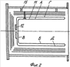 Нетрудно заметить, что элементы 8 и 11 имеют идентичную форму, но установлены горизонтально, торцовыми стенками к крышкам соответственно на крышке 3 и в корпусе 1 с разворотом друг относительно друга на 90 градусов относительно продольной оси корпуса печи. Нагревательные элементы выполнены из листового жаропрочного металла.