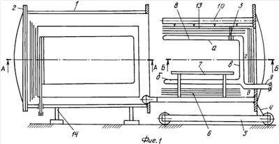 Второй нагревательный элемент закреплен в корпусе 1 на кронштейне 15, смонтированном в полости корпуса 1.