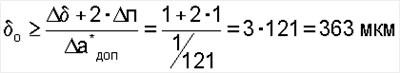 В зависимости от величин допустимой относительной погрешности параметра а, максимальной погрешности определения выходного параметра измерительного устройства п и максимальной погрешности увеличения зазора на образцовую величину  (может быть обусловлена неточностью выполнения или измерения данного перемещения) рассчитывается образцовая величина изменения зазора из условия