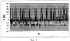 Конечные данные о зазорах, состоянии профиля коллектора 10 (профиль определяют, например, вычитанием из максимальной величины измеряемого зазора средних значений зазоров между измерительным преобразователем и ламелями коллектора 10), а также параметрах вибраций выдаются на экран дисплея 5 (Д) в виде диаграмм или таблиц, которые могут быть в дальнейшем сохранены в том или ином виде (например, в виде электронных копий или на бумажном носителе с помощью устройства выдачи информации 7 (УВИ)). Пример вывода результатов измерений профиля коллектора 10 на дисплей 5 (Д) приведен на фиг.13. Здесь на верхней диаграмме приведена кривая изменения зазора между измерительным преобразователем 1 (ИП) и коллектором 10 в процессе его вращения. Локальные максимумы данной кривой соответствуют положению измерительного преобразователя 1 (ИП) над той или иной ламелью коллектора 10, а величины данных максимумов определяются величинами зазоров между измерительным преобразователем 1 (ИП) и ламелями коллектора 10. Чем меньше указанный зазор, тем больше величина максимума. На нижней диаграмме фиг.13 представлен итоговый профиль коллектора 10, уровни ламелей на которой соответствуют величинам локальных максимумом на верхней диаграмме.