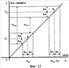 Описанная выше процедура корректировки параметра градуировочной характеристики измерительного прибора справедлива при стабильном положении контролируемых поверхностей относительно измерительного преобразователя 1 (ИП). При наличии вибраций коллектора 10 величина зазора х будет колебаться относительно его среднего значения (точки xбаз и xбаз+ o для рассмотренного выше случая на фиг.10), т.е. зазор будет изменяться в пределах х- хз<х<х+ хз, как это показано на фиг.12 ( хз – отклонение зазора от его среднего значения). Соответственно показания измерительного прибора также изменяются в пределах у- п<у<у+ п ( п – отклонение отдельных показаний измерительного прибора от среднего значения показаний в процессе измерений), как это продемонстрировано на фиг.12. Как видно из фиг.12, вибрации контролируемой поверхности приводят к ложной оценке величины приращения показаний измерительного прибора, соответствующего приращению зазора на образцовую величину перемещения о. Указанное приращение показаний измерительного прибора варьируется от уmin=(ya1– п)-(уа+ п) до уmax=(ya1+ п)-(уа– п), что в соответствии с выражением (15) приводит к неточности определения параметра градуировочной характеристики аi и к увеличению погрешности измерений. Для ее снижения следует использовать процедуру отыскания среднего значения показаний с заданной погрешностью п в соответствии с выражением (10).