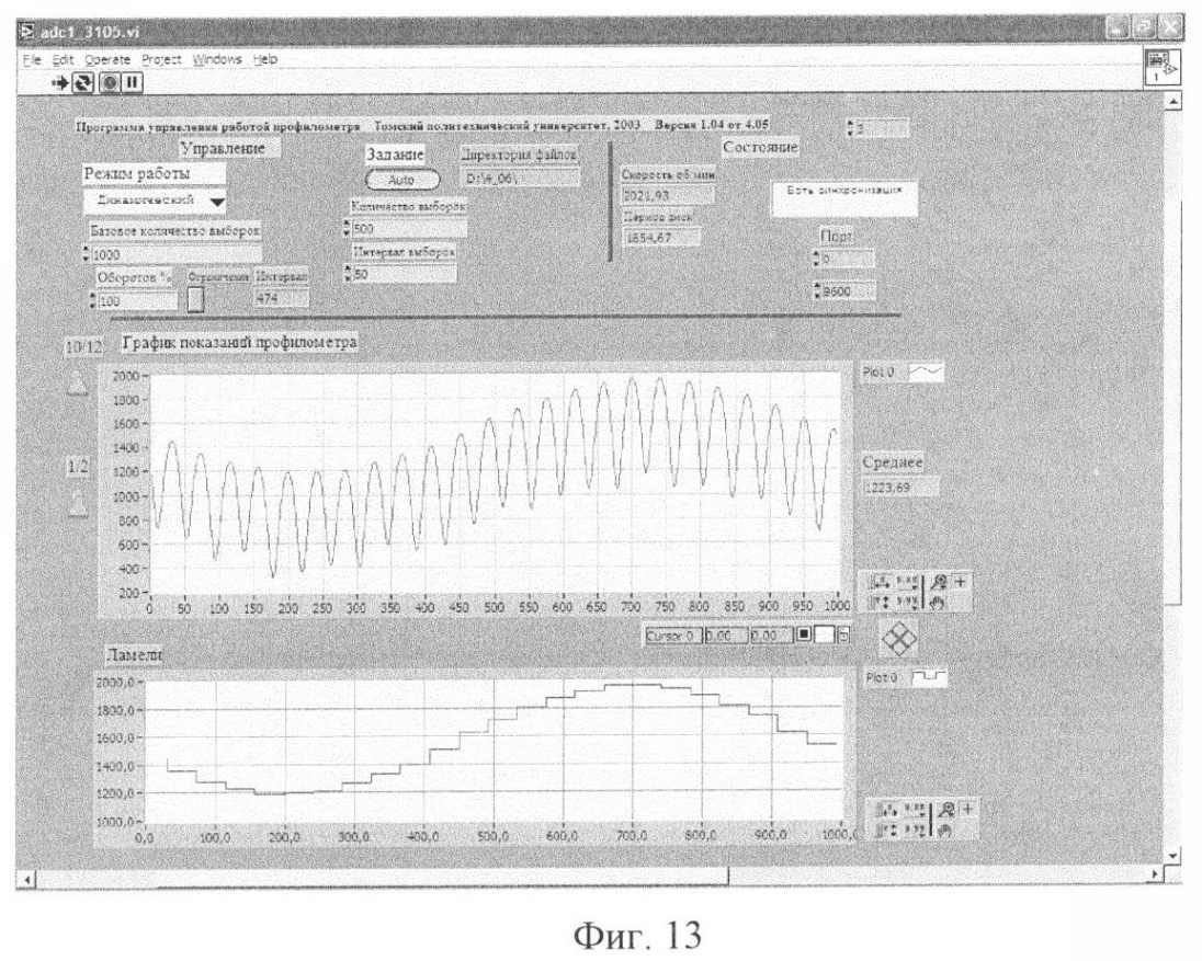 На фиг.13 приведен пример вывода результатов измерений профиля коллектора на экран дисплея.