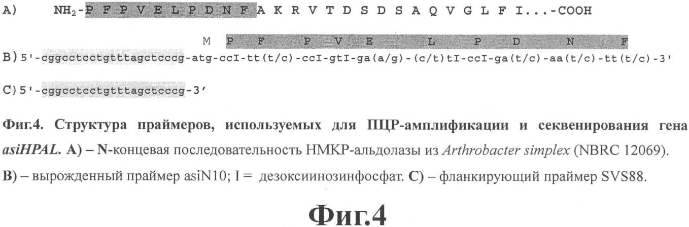 (в) белка, который по крайней мере на 70% гомологичен аминокислотной последовательности SEQ ID No: 2 и обладает активностью альдолазы; превращения полученной 4-гидрокси-3-метил-2-кетопентановой кислоты в 4-гидрокси-L-изолейцин при участии аминотрансферазы и/или дегидрогеназы, обладающей трансаминазной активностью по продукции 4-гидрокси-L-изолейцина из 4-гидрокси-3-метил-2-кетопентановой кислоты в присутствии донора аминогруппы; и выделение полученного 4-гидрокси-L-изолейцина.