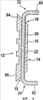 Фиг.4 изображает готовую холодильную плиту, изготовленную из корпуса 10 плиты, показанного Фиг.1. После достижения желаемой прессовой посадки трубы в канале 22 корпуса 10 плиты торцы трубы 32,34, выступающие за скошенные граничные поверхности 16, 18, сгибаются в направлении задней поверхности корпуса 10 плиты так, чтобы образовать соединительные патрубки 60, 62, располагающиеся в направлении, перпендикулярном плоскости, параллельной задней поверхности 14. Следует заметить, что скошенные граничные поверхности 16, 18 образуют выступы 64, 66, которые предохраняют изогнутые торцы трубы 32, 34 от внешнего влияния печи.