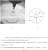 1. При опускании затравки в расплав гидродинамические тонкие потоки более холодного расплава (темного цвета) движутся по поверхности тигля хаотично, как правило проходя через центр тигля и касаясь затравки. На фиг.1 изображены: а – полученная с помощью цифровой видеокамеры экспериментальная картина гидродинамических потоков в тигле диаметром 10 см с расплавом диоксида теллура и опущенной в него затравкой из кристалла парателлурита радиусом 0,3 см, вращающейся со скоростью 1,36 с-1 по часовой стрелке; б – идеализированная схема потоков: 1 – кристалл, 2 – потоки, 3 – тигель.