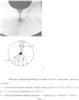 2. При достижении кристаллом диаметра, примерно в три раза меньшего, чем диаметр тигля, на поверхности расплава образуется система неподвижных (в смысле изменения своих угловых положений) потоков холодного расплава в виде прямых тонких полос, сходящихся на кристалле (фиг.2). На фиг.2 изображены: а – полученная с помощью цифровой видеокамеры картина гидродинамических потоков в тигле диаметром 10 см с расплавом диоксида теллура и вращающимся по часовой стрелке со скоростью 1,36 с-1 растущим кристаллом парателлурита радиусом 1,8 см, вытягиваемым со скоростью 0,8 мм/час; б – идеализированная схема потоков: 1 – кристалл, 2 – потоки, 3 – тигель.
