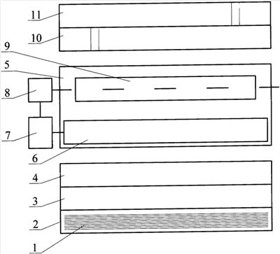 Пример конкретного выполнения. Слой стеблей 1 подвергается обработке на мяльно-трепальном агрегате. После раскладки на раскладочном столе 2, в частности, с использованием слоеформирующей машины 3, реализуются операции слоеутонения и слоеформирования, необходимые для качественного промина стеблей в мяльной машине 4. Затем слой попадает на промежуточный транспортер 5. При входе на этот транспортер при помощи измерительного устройства 6 определяются все необходимые для дальнейших расчетов структурные параметры, а именно средняя длина стеблей, среднеквадратические отклонения по вершиночным и комлевым концам, а также Х – текущее положение слоя относительно линии зажима транспортера второй трепальной машины. Устройство 7 позволяет с использованием ЭВМ вычислить величину =Х-Хопт, где Xопт – оптимальное положение слоя относительно линии зажима транспортера второй трепальной машины. Устройство 7 дает команду исполнительному устройству 8, обеспечивающему смещение рабочего органа 9 на величину в нужную сторону, в зависимости от того, куда от оптимального положения сдвинут слой, то есть в соответствии со знаком величины . За счет изменения положения слоя и расположения его оптимальным образом относительно линии зажима повышается пригодность слоя к трепанию, и увеличивается доля стеблей, попадающих под зажимные транспортеры трепальных машин 10 и 11.