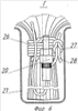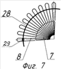 Упругий конгруэнтный конической части сопла каркас 5 служит в качестве опоры для фиксации силовой мембраны 1 по внутренней поверхности сопла 2. Он образован из стержней 22 (фиг.1) переменного по их высоте сечения, увеличивающегося в направлении среза 4 сопла 2, равномерно распределенных по периметру сопла 2 вдоль образующих. Стержни 22 выполнены из жгутов стекловолокна, скрепленных полимерным связующим. Каркас 5 его широкой частью закреплен вместе с мембраной 1 на коллекторе 13, а узкой – на упорном кольце 23.