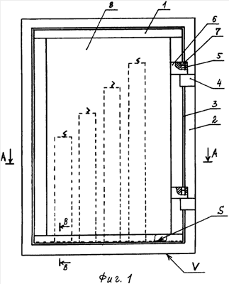 Опорная поверхность V – наружная поверхность каркаса 2 или его часть, предназначенная для ввода во взаимодействие с контактной поверхностью и закрепления к последней, например к стене, или полу, или стене и полу помещения, или другим элементам конструкции, или агрегатов. Данная опорная поверхность V может иметь произвольную геометрическую форму на любом виде и любом сечении каркаса 2.