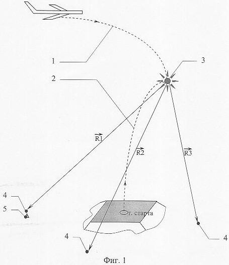 В результате решения определяют координаты (X, Y, Z) ОИ 3 в момент его подрыва.