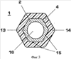 На фиг.3 показано, что заделываемый участок 13 соединительного элемента 2 выполнен в виде элемента с геометрическим замыканием и имеет в направлении периметра вокруг оси изоляционной трубы 4 отклоняющийся от круга профиль 15, например, в виде многоугольника. Таким образом, между изоляционной трубой 4 и соединительным элементом 2 обеспечивается геометрическое замыкание. Соответствующим образом можно обеспечить также геометрическое замыкание между изоляционной трубой 4 и соединительным элементом 3. Вместо многоугольника профиль может иметь также эллипсную структуру или другую ротационно несимметричную структуру. За счет этого обеспечиваются особенно хорошие передаточные параметры при возникновении больших крутящих моментов, что требуется, например, от приводного вала для контактной системы устройства для сверхвысоких токов. На профиле могут быть, при необходимости, образованы также в направлении периметра углубления или расширения. За счет этого обеспечивается дополнительное геометрическое замыкание при нагрузке на растяжение.