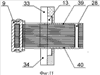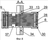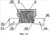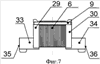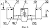 По варианту 2 короткозамкнутые витки 9 и 10 могут быть закреплены в пазах крайних кернов сердечника 6 при помощи колодок 29 и 30, имеющих U-образную форму, повторяющую контур сердечника 6, в верхней части крайних ответвлений 31 и 32 которых выполнены пазы и сквозные отверстия для установки короткозамкнутых витков 9 и 10, в нижней по вертикальной оси части – сквозное отверстие для установки колодок 29 и 30 на шпонку 13, проходящую через сквозное отверстие в сердечнике 6 и на концах которой установлены амортизаторы 33 и 34. Амортизаторы 33 и 34 упираются своими торцами 35 и 36 во внутренние стенки корпуса 1 и надежно фиксируют пластмассовые колодки 29 и 30 и сердечник 6 с установленными на нем короткозамкнутыми витками 9 и 10 в корпусе 1. На поверхностях колодок 29 и 30, обращенных к сердечнику 6, могут быть выполнены углубления под головки заклепок 28 сердечника 6, а так же выступы 37 и 38, обращенные к сердечнику 6 и охватывающие сверху и снизу его нижнюю горизонтальную часть, соединяющую крайние керны.