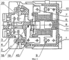 Наиболее близким по технической сущности к вариантам заявляемого устройства является электромагнитный коммутационный аппарат – пускатель серии ПМ 12-016, выпускаемый ОАО “Арзамасский приборостроительный завод” (см. листок-каталог Информэлектро 07.14.23-01 “Пускатели электромагнитные типа ПМ12” [2]). Пускатель ПМ12-016 (фиг.1) содержит корпус 1, сердечник 6 с включающей катушкой 8, якорь 7, амортизаторы 11, расположенные между сердечником 6 и корпусом 1, камеру 2 с расположенными в ней неподвижными контактными узлами 19 и 20, траверсу 3, соединенную с якорем 7 при помощи шпонки 18, подвижные мостиковые контактные узлы 4, выполненные в виде планок с серебросодержащими контакт-деталями, установленные в траверсе 3, короткозамкнутые витки 9 и 10, установленные в пазах крайних кернов сердечника 6 расклепыванием, возвратную пружину 43.